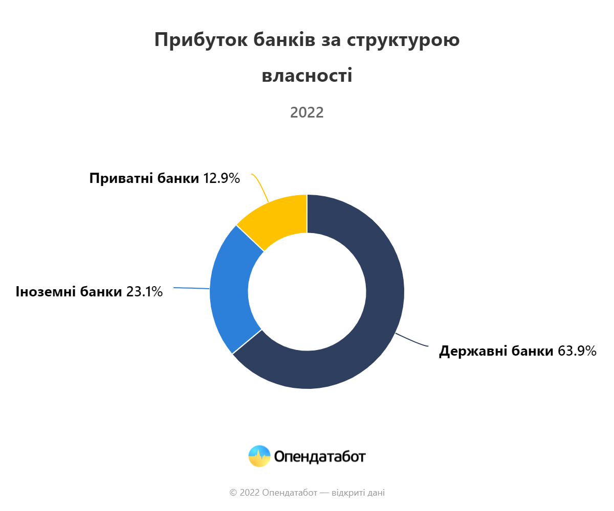 Все 4 государственных банка были прибыльны в первом месяце 2023 года и заработали 9,4 млрд грн. Их доля в общей прибыли составила 64%.