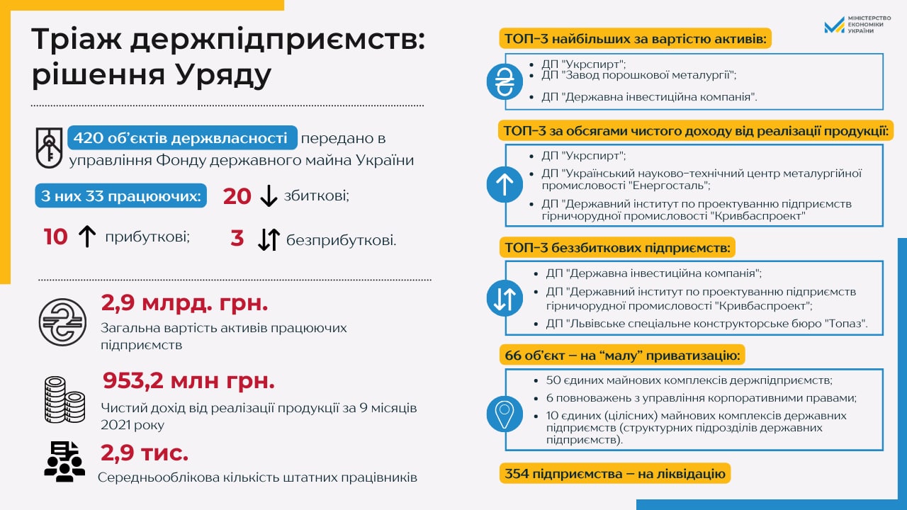 Там также заверили, что ведомство будет продолжать анализ государственных активов для последующих этапов триажа госпредприятий, после чего часть из них также найдет новых эффективных собственников.