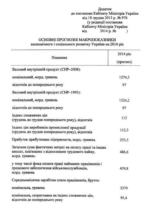 Кабинет министров прогнозирует, что внутренний валовой продукт (ВВП) Украины снизится на 3% в текущем 2014 году по отношению к предыдущему году, а инфляция составит 12%. Такие цифры зафикисрованы в Основных макроэкономических прогнозах экономического и социального развития Украины на 2014 год.