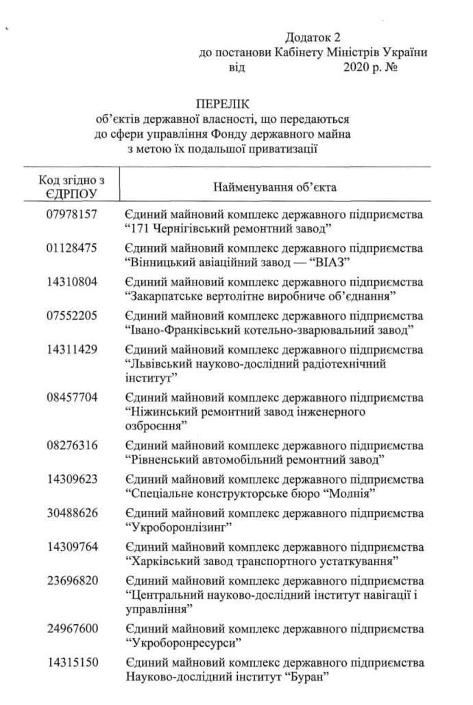 Перечень объектов обнародовал в Telegram нардеп от "ЕС" Алексей Гончаренко, который участвовал в заседании правительства.