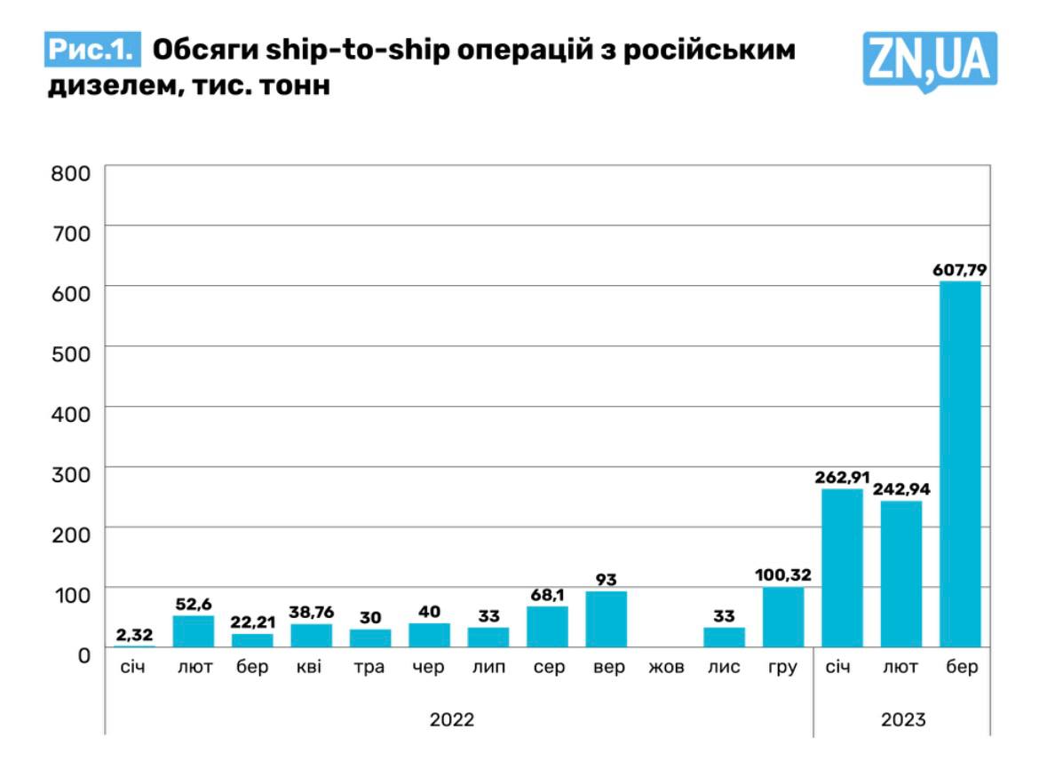 Как объясняет эксперт, огромные объемы переливаются в море на другие суда (операция ship-to-ship, STS). В марте и апреле почти 20% объемов дизтоплива, отгруженного из России морем, меняло судно при следовании в порт назначения. Это позволяет сократить транспортные расходы на длинных маршрутах, а также использовать STS во избежание санкций. Сервисы отслеживания судов показывают, что наибольшие объемы операций STS осуществлялись у берегов Греции, Гибралтара и Того. После перегрузки танкеры с российским продуктом дальше направлялись в порты Саудовской Аравии, ОАЭ, Турции и Бельгии. По мнению трейдеров, в редких случаях во время STS операций российское дизтопливо может смешиваться с продуктом другого происхождения и больше не считаться российским согласно европейскому законодательству.