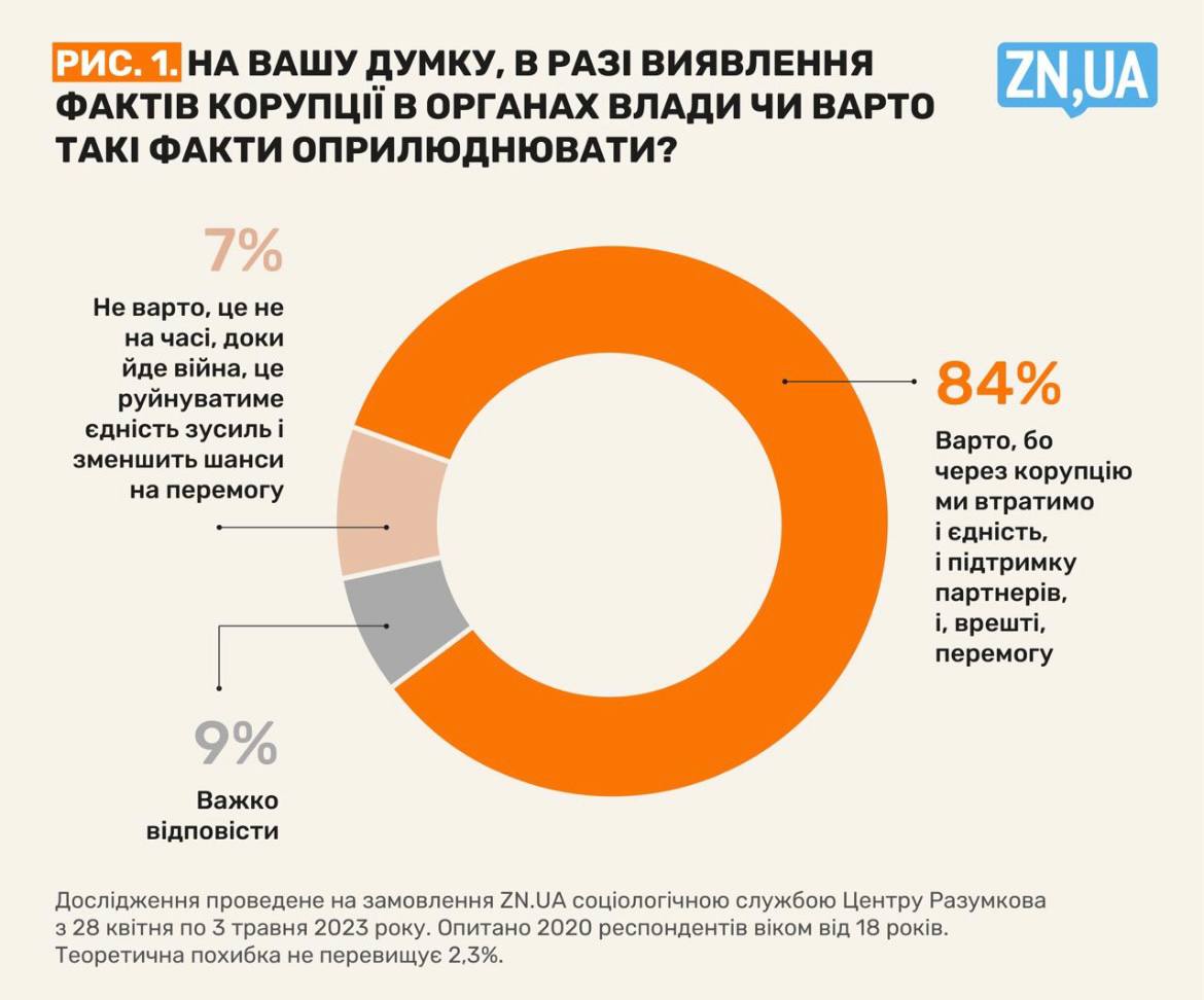 84% наших сограждан убеждены, что факты о коррупции обнародовать «Следует, потому что из-за коррупции мы потеряем и единство, и поддержку партнеров, и, наконец, победу». Именно этот вариант избрало подавляющее, сверхконституционное большинство, отвечая на вопрос ZN.UA «По Вашему мнению, в случае выявления фактов коррупции в органах власти стоит ли такие факты обнародовать?». Об этом пишет Юлия Самаева, редактор ZN.UA, в материале «Главные внутренние враги украинцев — коррупционеры во власти. Банковая, спишь?».