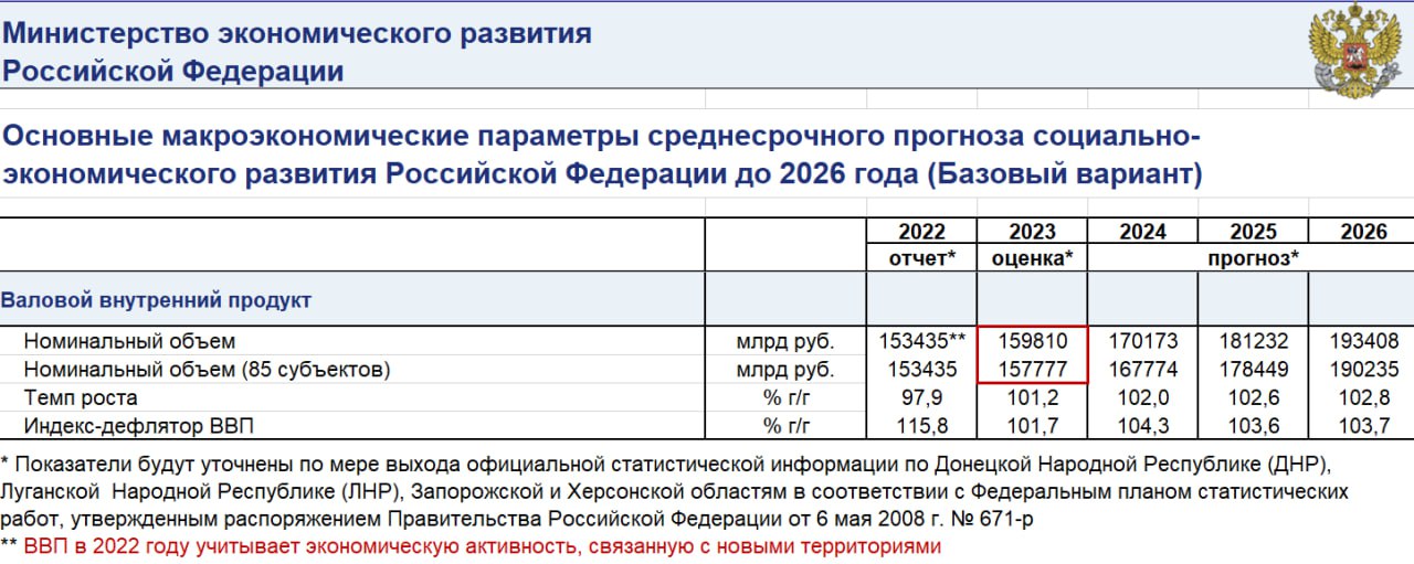 Напомним, что в данных Минэкономики РФ за прошлый год тоже были учтены «новые территории» - по Донецкой, Луганской, Запорожской и Херсонской областям.