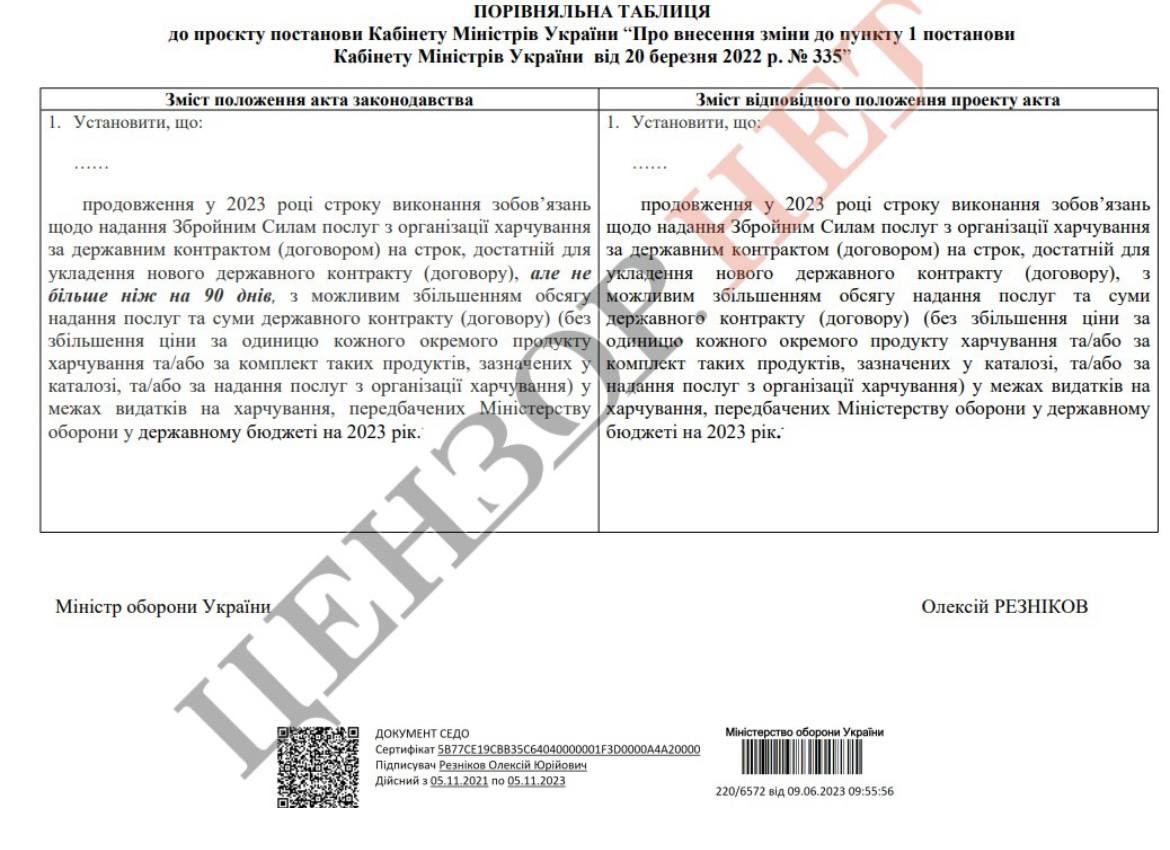 Министерство обороны хочет вернуть возможность заключать прямые договора на питания, которые позволяют делать закупки по завышенным ценам. Об этом министерство попросило Кабмин, пишет Цензор.НЕТ со ссылкой на письмо от Минобороны на Кабмин с предложением продлить выполнение обязательств по питанию армии по госконтракту уже не на 90 дней, а на 2023 год.