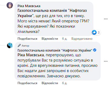 И только после того, как возмущенная клиента второй раз написала, что ее города больше нет, в "Нафтогазе" попросили перейти в частные сообщения. Что делать жителям разрушенных городов, "Нафтогаз" публично так и не ответил.