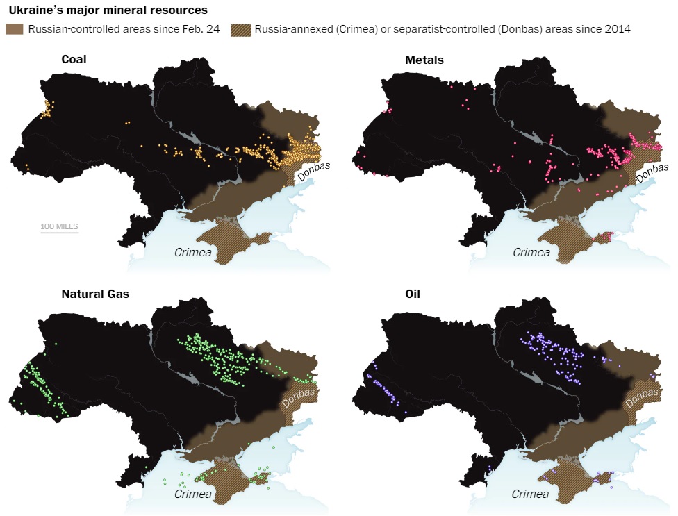Напомним также, на оккупированных территориях Украины залегают полезные ископаемые на 12,4 трлн долларов. РФ контролирует 63% наших угольных месторождений, 11% нефтяных и 20% газовых. Кроме того, в оккупации находится 42% украинских месторождений металлов и 33% – редкоземельных и других важных материалов, в том числе лития. В этих цифрах учтены как оккупированные Россией до 24 февраля 2022 года территории, так и захваченные в ходе полномасштабного вторжения в Украину.