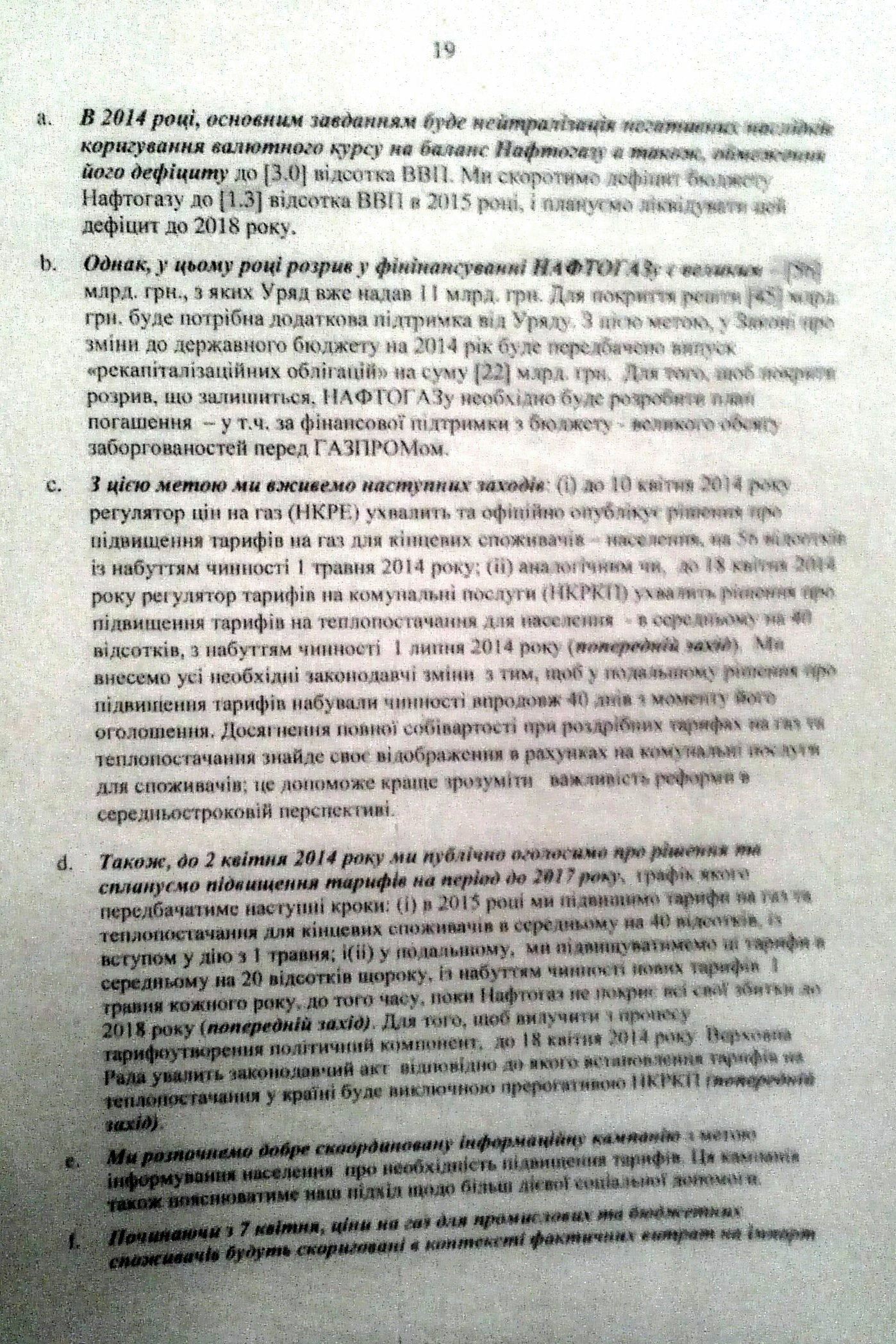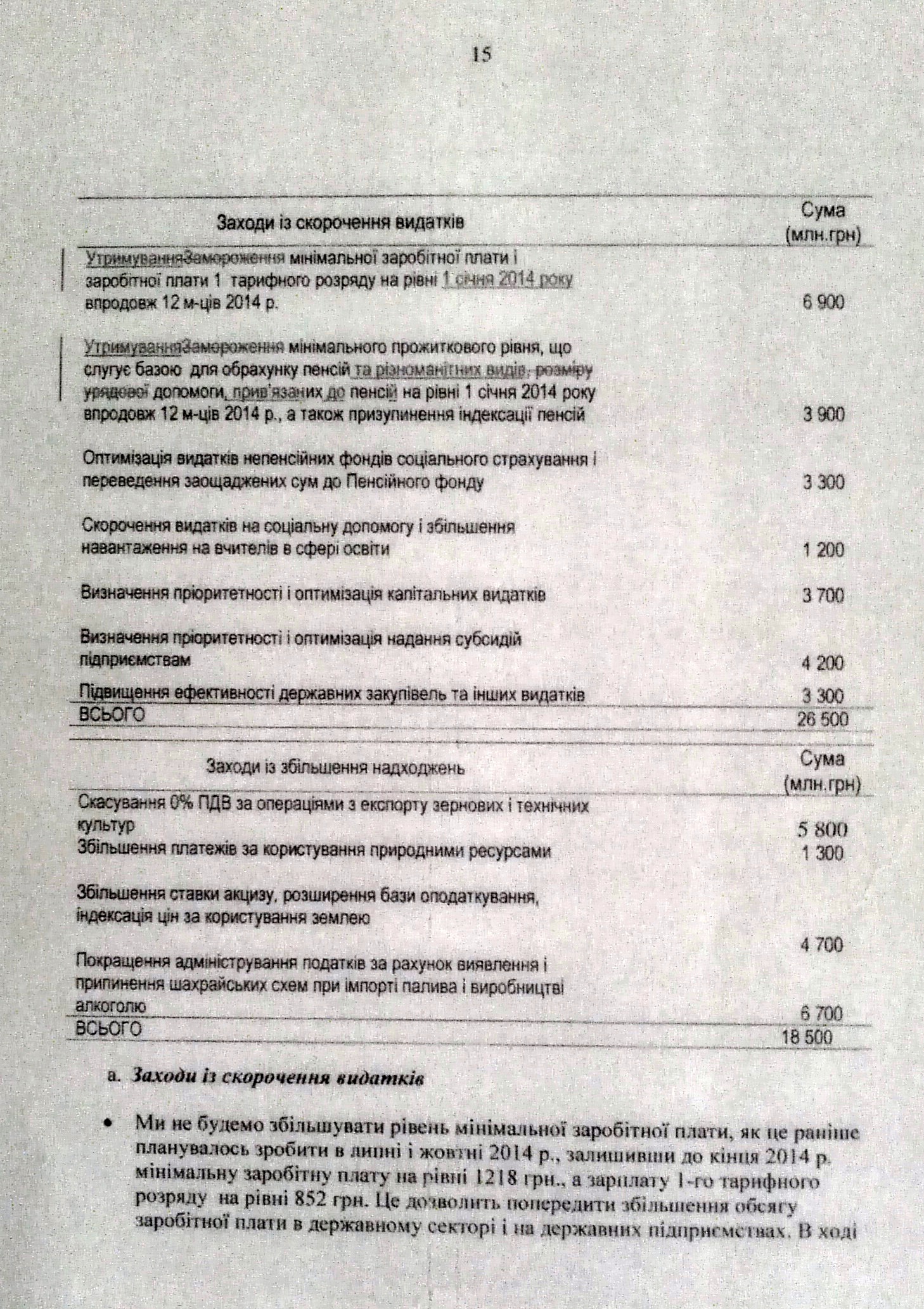 Настоящий документ, в котором подробно прописаны первые (уже осуществленные) шаги нового правительства, а также его дальнейшие намерения, определяет генеральную экономическую линию властей Украины в 2014–2016 годах.