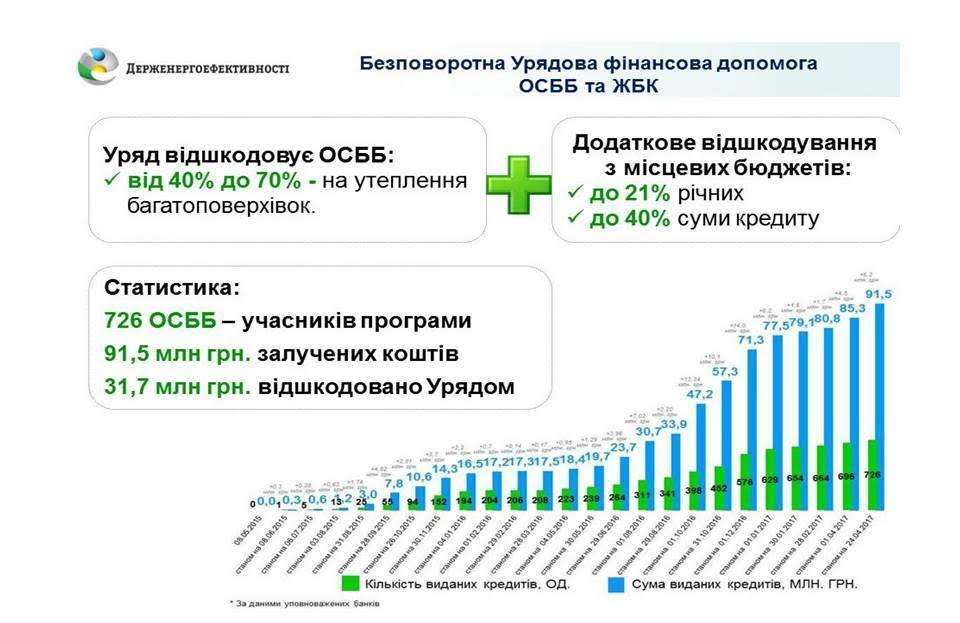 В частности, на прошлой неделе 13 ОСМД привлекли 2,1 млн грн на энергоэффективные мероприятия. Для сравнения, на позапрошлой неделе 9 ОСМД получили более 1 млн грн на утепление.