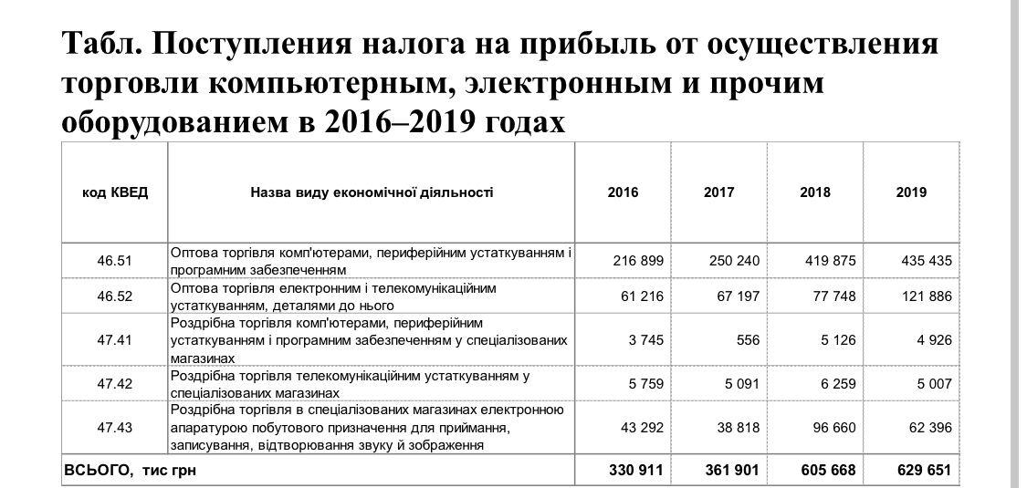 Официальные данные Государственной налоговой службы, полученные на запрос ZN.UA, свидетельствуют о том, что поступления налога на прибыль от торговли компьютерным, электронным и прочим оборудованием (согласно КВЭД 46.51, 46.52, 47.41, 47.42, 47.43) продолжают свою тенденцию к росту.