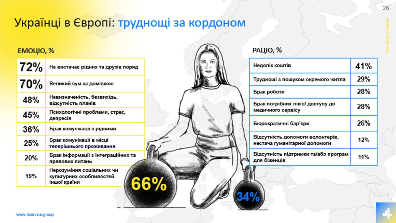 При этом 85% украинцев ощущают доброжелательное отношение к себе со стороны местных жителей. Еще 10% заявили, что испытали равнодушное, а 2% — негативное отношение к ним со стороны европейцев.