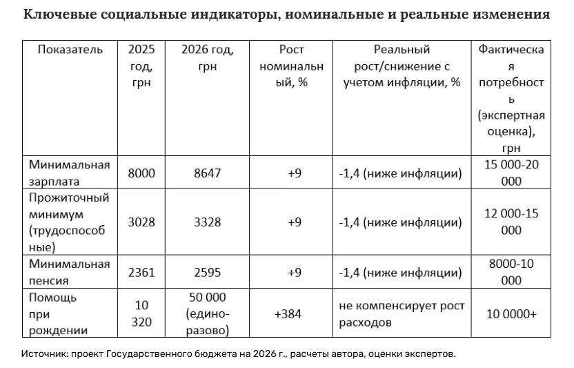 Каждый следующий бюджет Украины в условиях полномасштабной войны декларирует увеличение социальных расходов, однако на практике они только уменьшаются, поскольку темпы инфляции значительно выше, чем предложенный правительством "рост", пишет в статье "Социальные выплаты-2026: между реальной инфляцией и правительственными иллюзиями" эксперт по вопросам социальной политики Андрей Павловский.