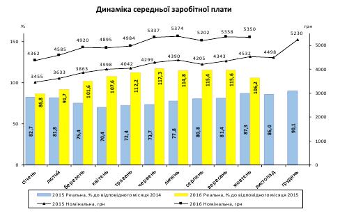 Средняя номинальная заработная плата штатного работника в октябре 2016 года составила 5350 грн, увеличившись по сравнению с октябрем 2015 года на 18,1%, сообщает Государственная служба статистики Украины.