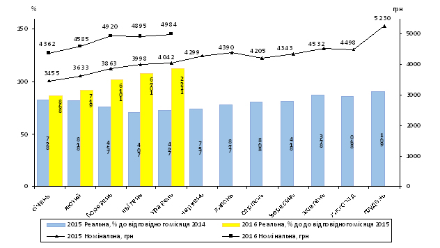 Средняя номинальная заработная плата штатного работника в мае 2016 года составила 4984 грн, увеличившись по сравнению с маем 2015 года на 23,3%, сообщает Государственная служба статистики.