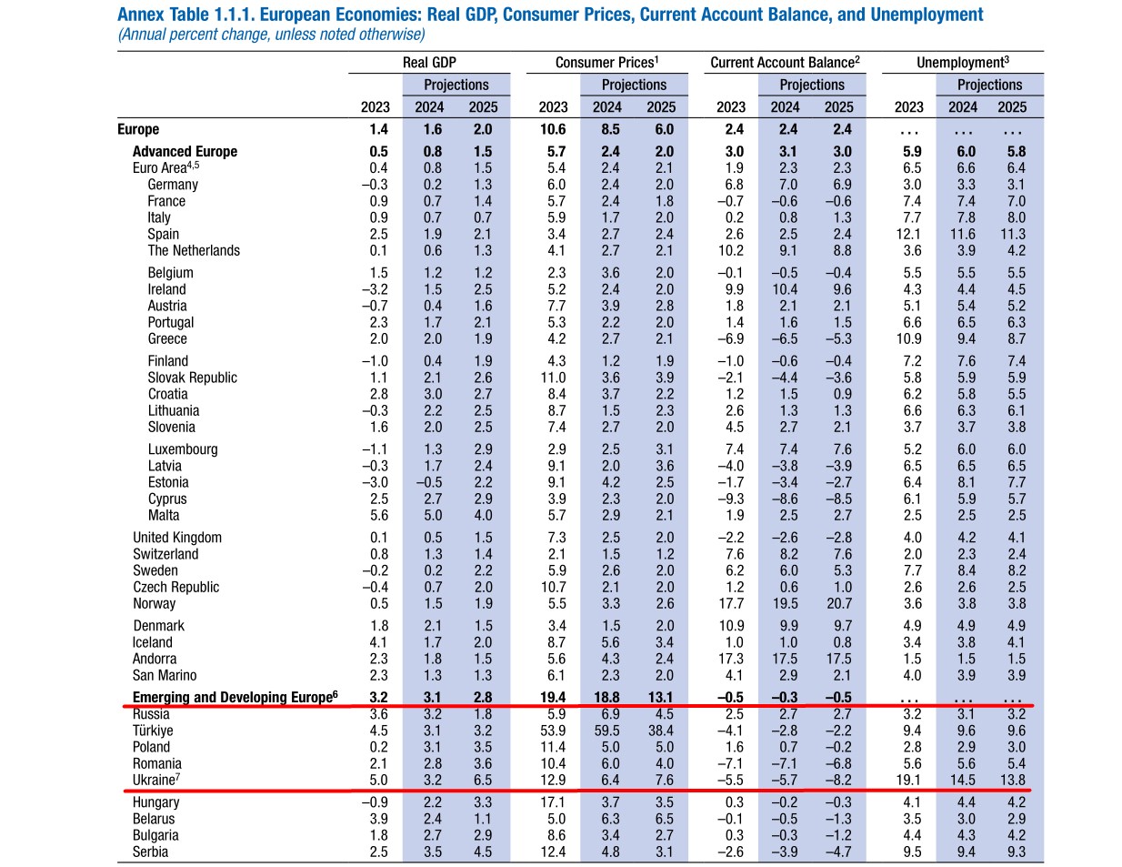 По классификации МВФ, Украина входит в группу развивающихся европейских стран. В этом же списке есть также Россия и Турция. По данным МВФ ВВП России в 2023 году составил 3,6% роста, а в 2024 – составит 3,2%. В 2025 году соответствующий показатель должен быть по данным МВФ – 1,8%.