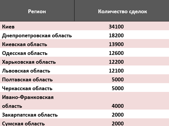 Конечно, Киев и Киевская область опережают остальные регионы, но привлекает внимание высокая активность в Днепропетровской и Харьковской областях. А вот во Львовской, Ивано-Франковской и даже Закарпатской количество сделок более скромное. Незначительное количество сделок на некоторых рынках связано с тем, что в небольших городах спрос в абсолютном измерении всегда ниже. Кроме того, сказывается недостаточное предложение в новостройках, да и релокация бизнеса все еще не затронула эти регионы.