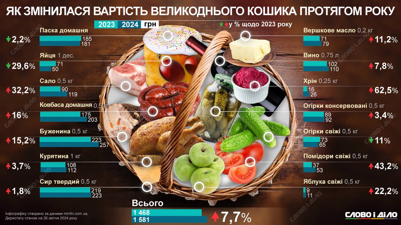 Ранее обнародован альтернативный подсчет Пасхальной корзины. По информации директора Национального научного центра «Институт аграрной экономики», академика НААН Юрий Лупенко, Пасхальная корзина будет дороже на 17,6%, чем в 2023 году.