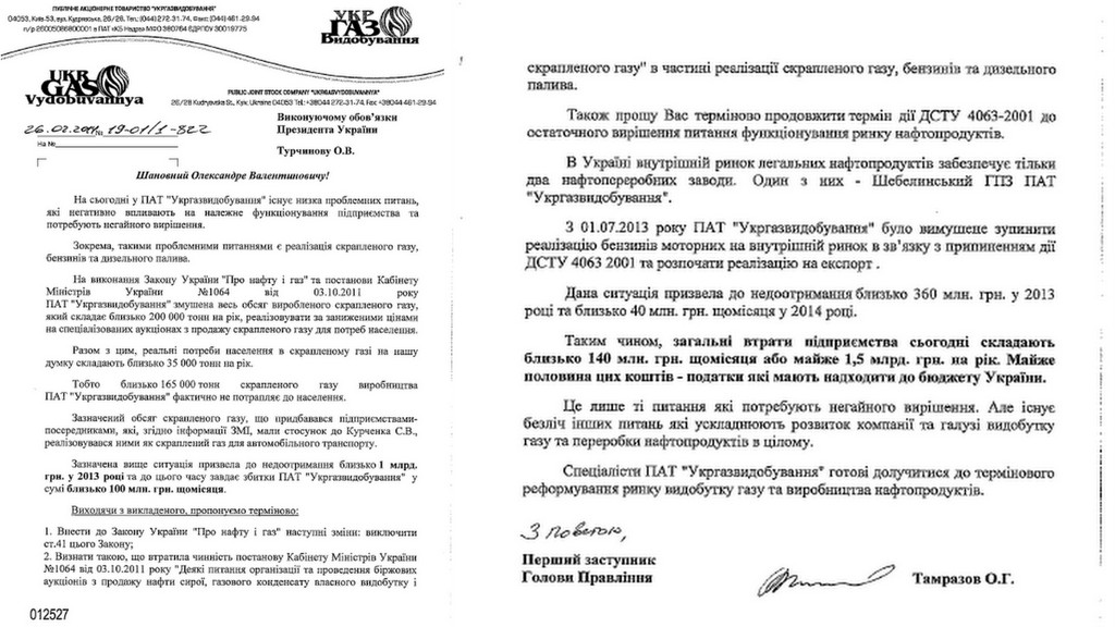 Об этом говорится в открытом письме "Укргаздобычи" в адрес и.о. президента А.Турчинова, обнародованном на сайте компании в среду, 26 февраля.