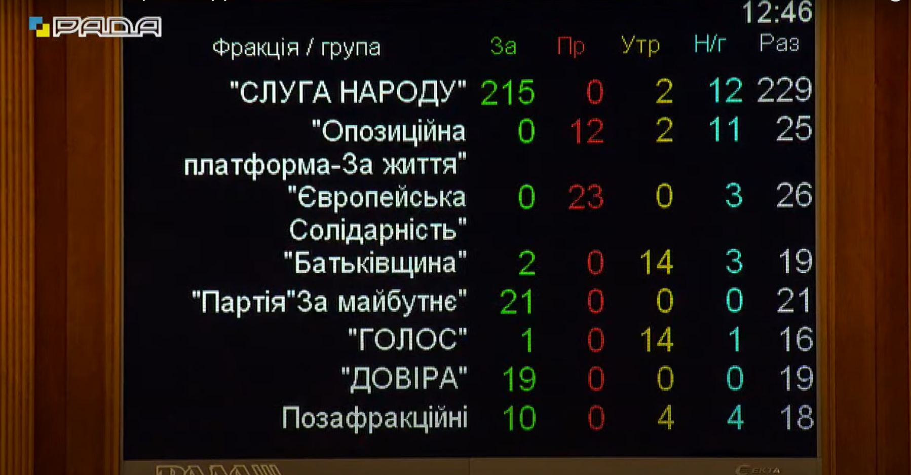 - «Довіра» – 19 «за»;