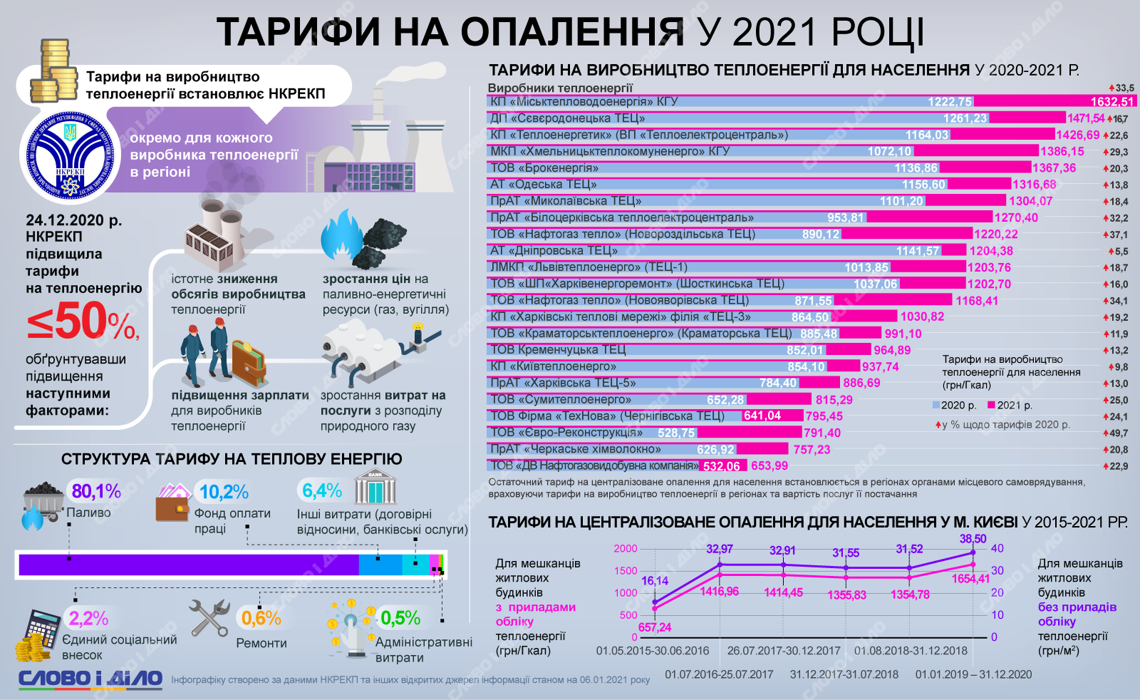 Напомним еще, что Национальная комиссия, осуществляющая государственное регулирование в сферах энергетики и коммунальных услуг (НКРЭКУ) с 1 января повысила тарифы для 23 теплопоставляющих компаний. Причем в некоторых регионах суммы выросли на 50 процентов.