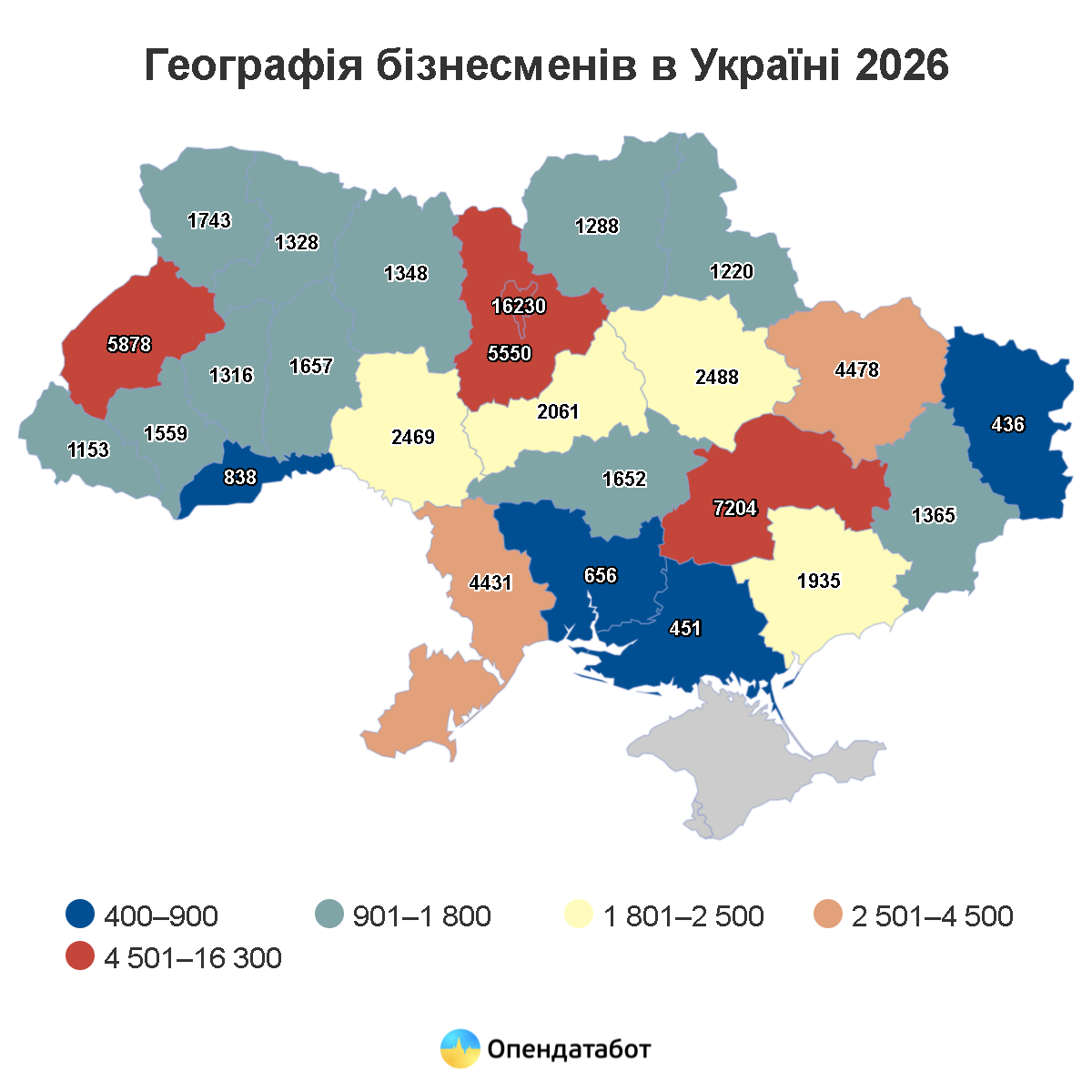 Из перечня выбыли 9 122 участника, зато добавились 15 450 новых. Чистый прирост составил 6 328 бизнесменов. Почти четверть всех представителей крупного бизнеса зарегистрированы в Киеве — 16 230 человек. Далее следуют Днепропетровская область (7 204) и Львовская (5 878). На эти три региона приходится около 40% крупного бизнеса страны.