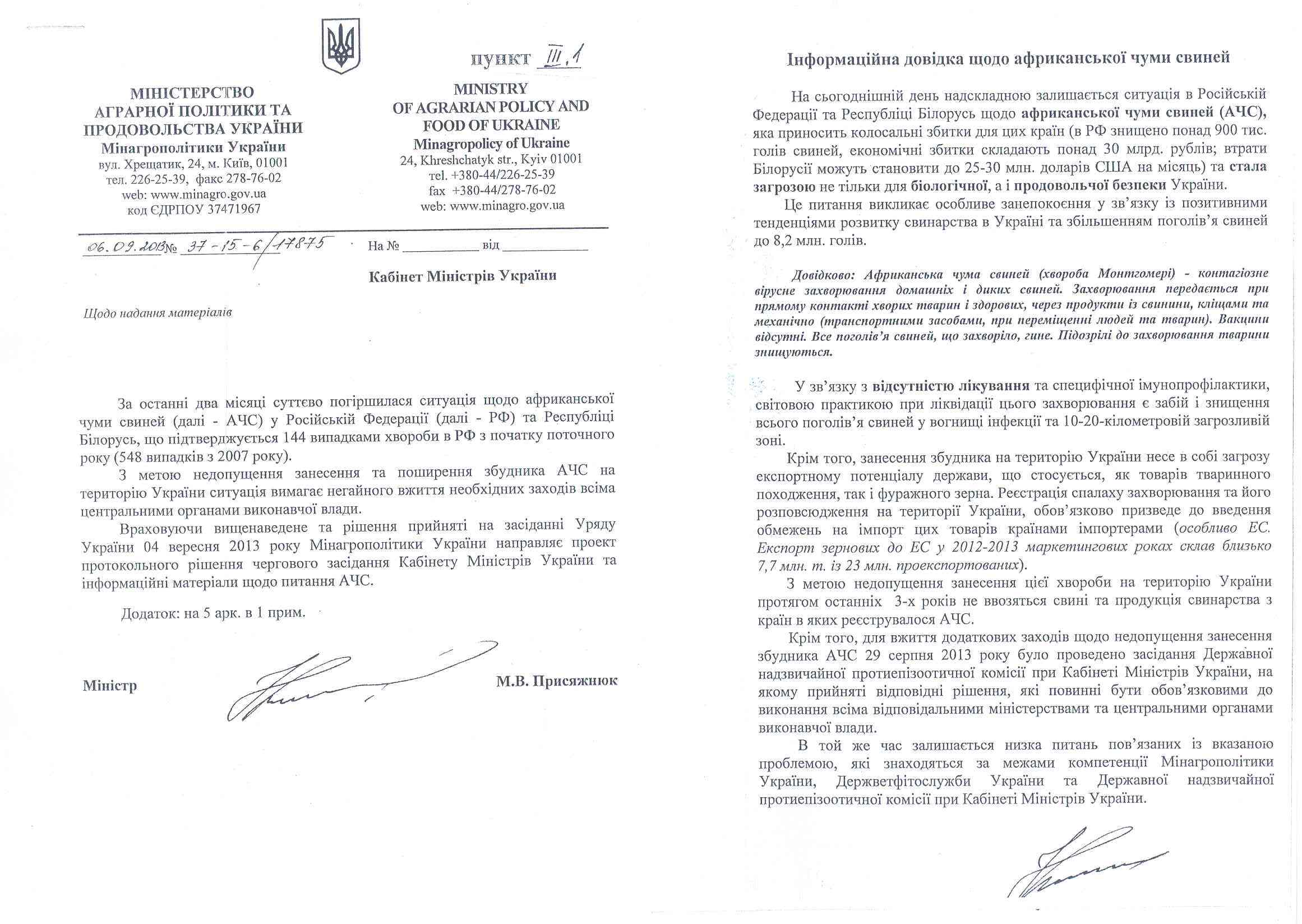 Министерство аграрной политики требует срочного принятия всеми центральными органами исполнительной власти мер для борьбы с распространением африканской чумы свиней.