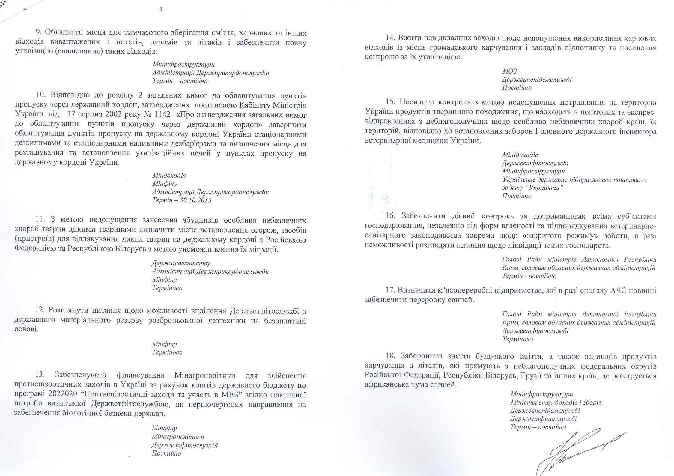 В частности, документом предлагается Госпогранслужбе обеспечить присутствие специалистов аграрных служб государственного ветеринарно-санитарного контроля и наблюдения на государственной границе и транспорте в пунктах пропуска через государственную границу Украины областей угрожающей относительно занесения возможного возбудителя АЧС зоны.