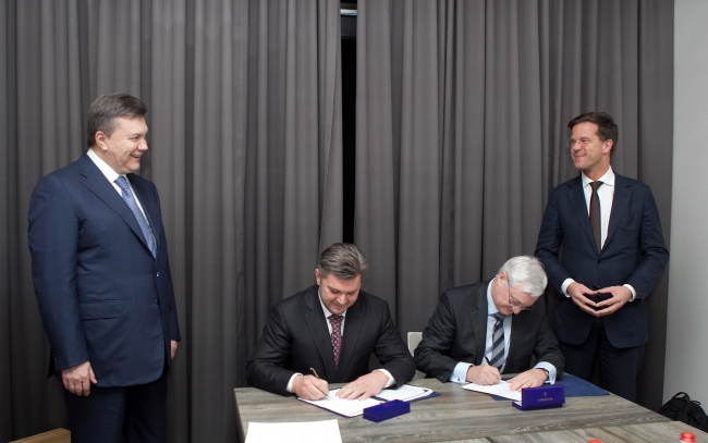 В Давосе в присутствии президента Украины Виктора Януковича и премьер-министра Нидерландов Марка Рютте подписано соглашение между компанией 3 и компанией "Недра Юзовская" о разделе продукции от добычи сланцевого газа на Юзовской площади в Харьковской и Донецкой областях.