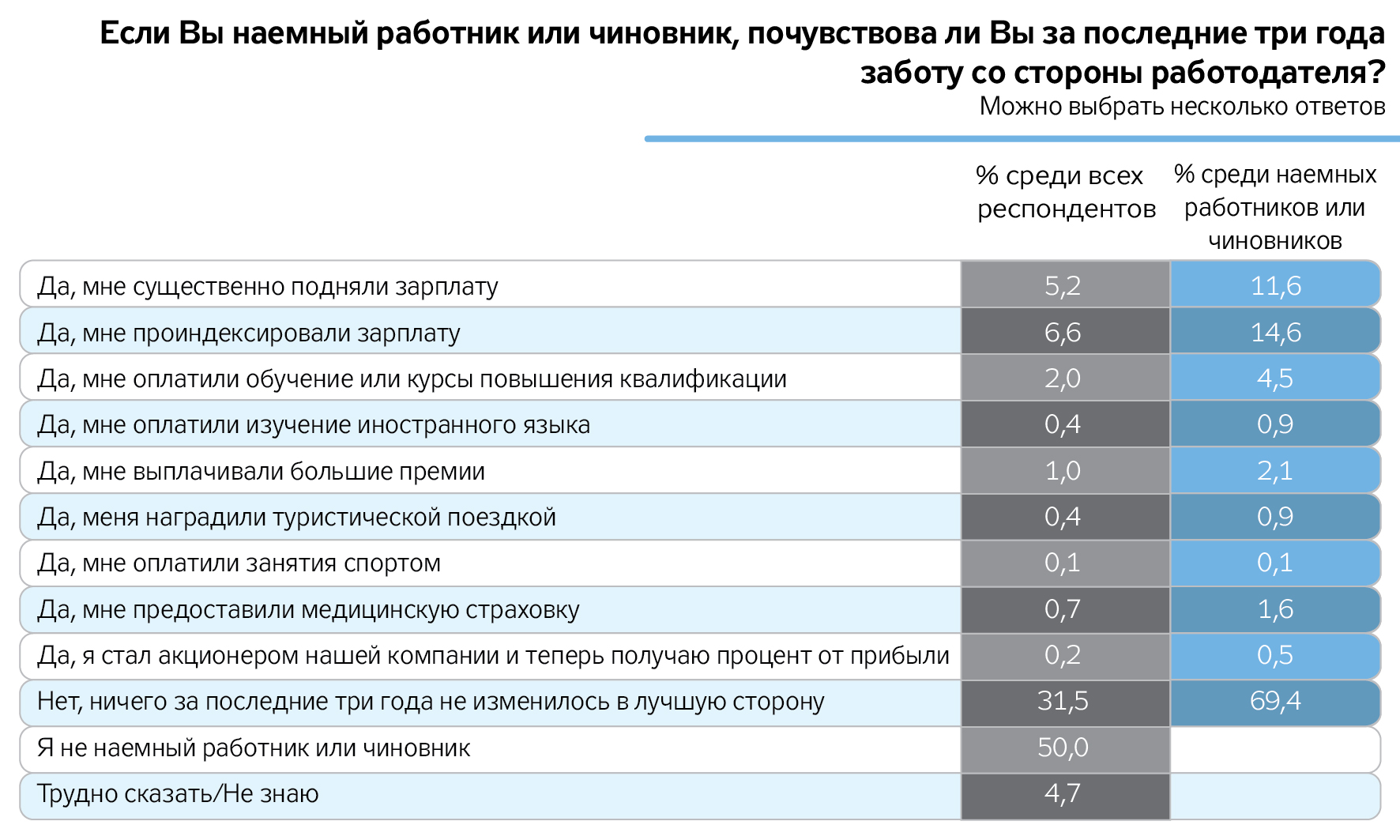 За этот период существенно повышена или проиндексирована зарплата у малой доли сотрудников (11,8 и 26,2%, соответственно).