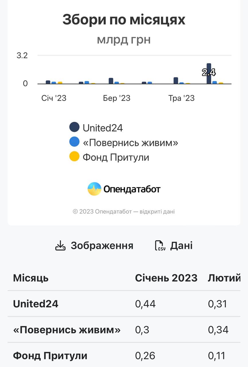 Всего за первые шесть месяцев года на счета фондов поступило 8,4 млрд. гривен. Для сравнения, это на 22% меньше, чем за второе полугодие 2022-го. То есть, до июня сбор средств падал. Жаль, эксперты не объяснили всплеск переводов. Но, вероятно, это была вызвана мятежом Пригожина в РФ.