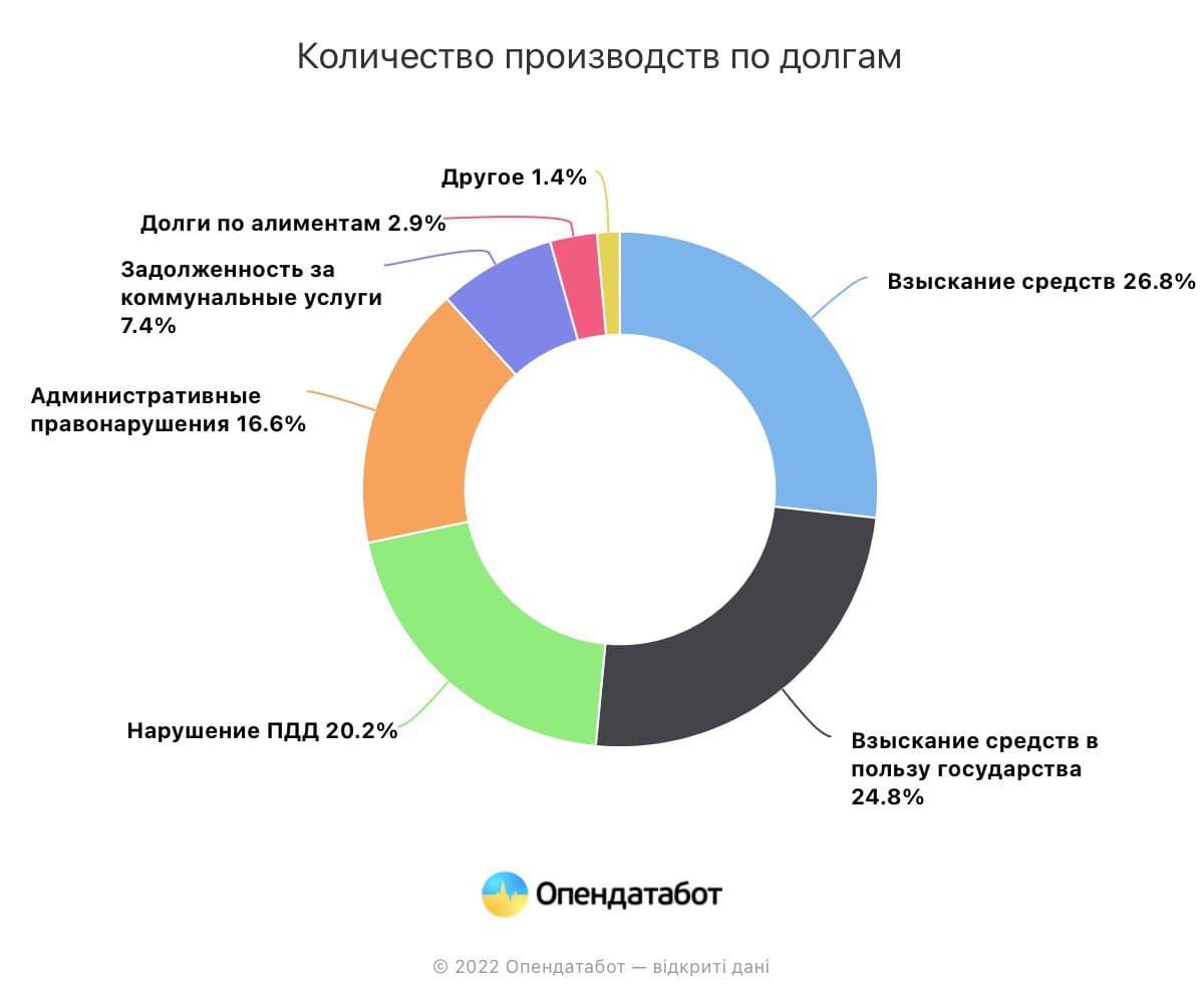 - задолженность перед банками, компаниями и организациями — 1 761 749 долгов (27% от общего числа задолженностей);
