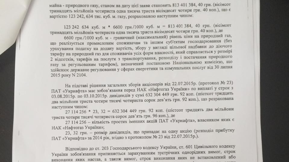 "Учитывая наличие у НАК "Нафтогаз Украины" перед ПАО "Укрнафта" встречных денежных обязательств по возмещению вреда, причиненного Обществу вследствие противоправного завладения и распоряжения Компанией природным газом ПАО "Укрнафта" добычи января-февраля 2008 года, выплата дивидендов осуществлена на основании статьи 601 Гражданского кодекса Украины путем взаимозачета.