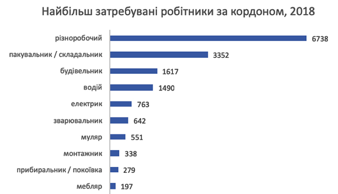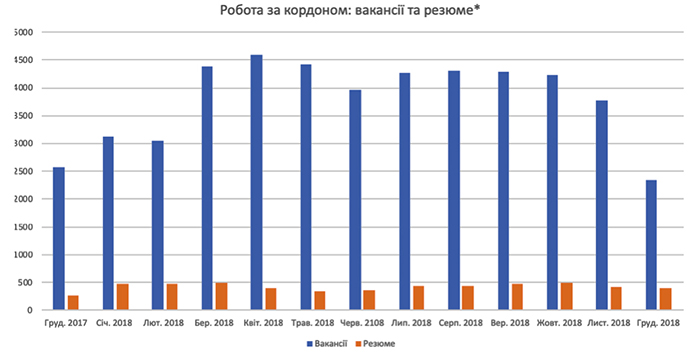 В течение 2018 для украинцев были доступны вакансии в семидесяти странах мира. Общее количество вакансий за 2018 составило почти 47 тыс.