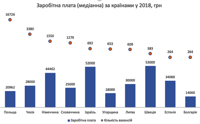Итак, для прагматичного украинца, который рассуждает о работе за границей, интересными для трудовой эмиграции могут быть Германия и Израиль. В тройку стран с наибольшим количеством вакансий входят Польша, Чехия и Германия.