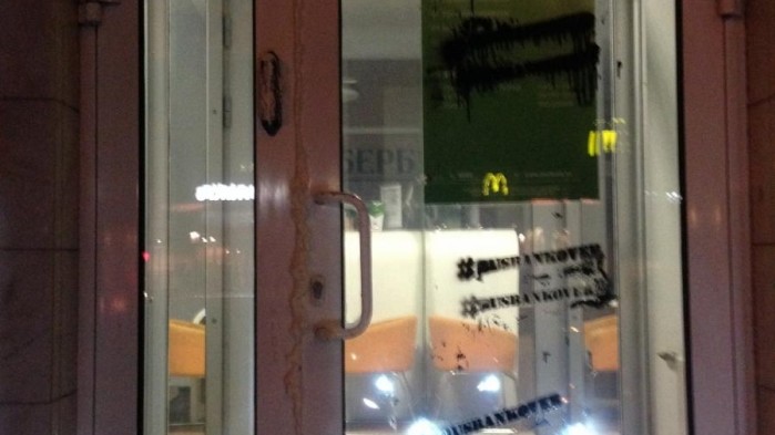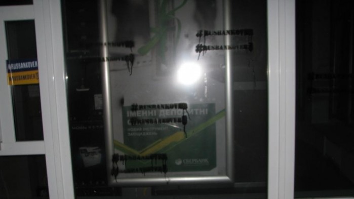 Согласно сообщению, на дверях банковских отделений, а также на самих банкоматах наклеены наклейки с надписью #rusbankover.