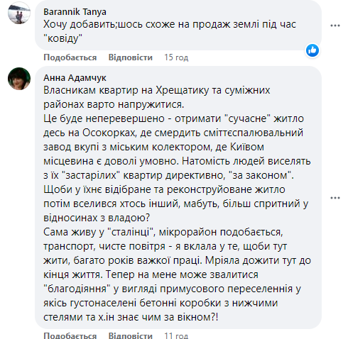 Возможно, потому, что земельный дерибан - это особая тема в столице, и нынешнее городское руководство в этом плане не исключение. В частности, это продемонстрировал один из комментариев под постом Леси Забуранной.