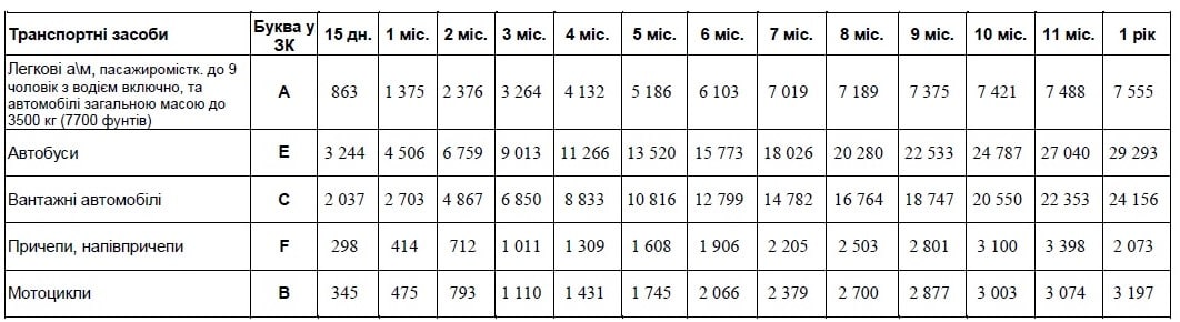 - Для автобусов – 4506 грн. (ранее 4763 грн);