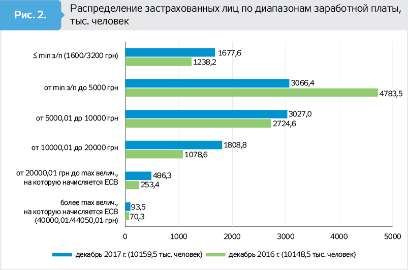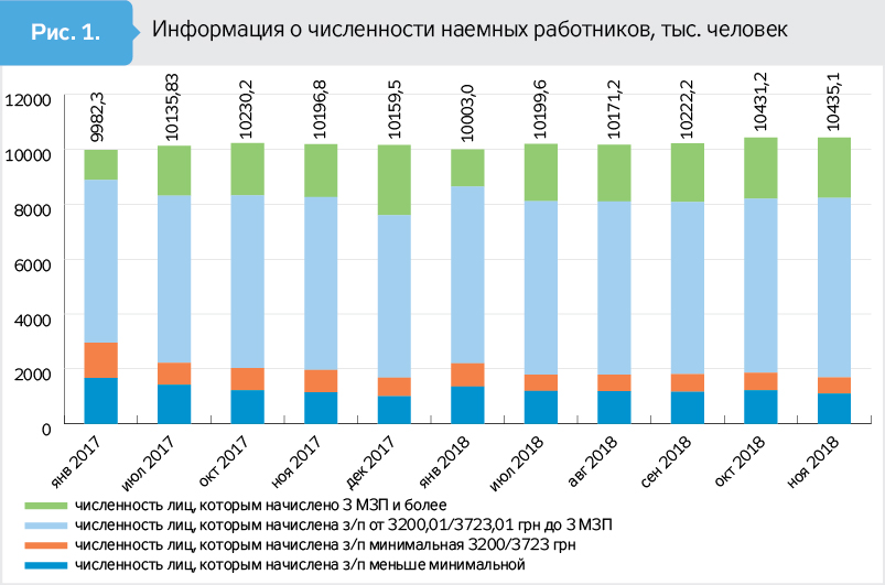 С января 2017-го по ноябрь 2018 г. уменьшилось вдвое число лиц, получавших минимальную заработную плату (МЗП) и ниже ее (с 3 млн до 1,5 млн человек). В то же время выросло на 500 тыс. количество лиц, получающих зарплату в диапазоне свыше МЗП - до трех МЗП, увеличилось на 1,1 млн число лиц, получающих более трех МЗП. Кроме того, выросло общее количество застрахованных наемных работников - приблизительно на 500 тыс.