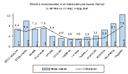 В декабре 2016 года граждане Украины заплатили за жилищно-коммунальные услуги 7,9 млрд грн из начисленных 12,5 млрд грн.