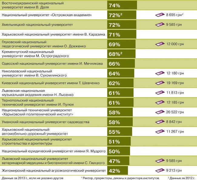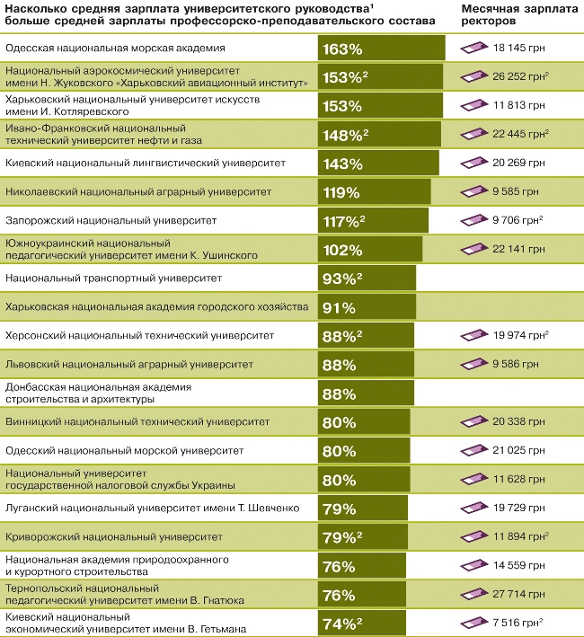 В этой ситуации красноречивы зарплаты ректоров некоторых национальных вузов, достигающие 20 тыс. грн и более.