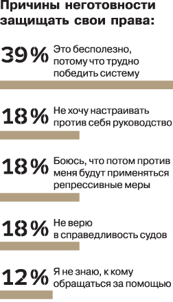 Как подтвердило исследование, основная причина неготовности защищать свои права - уверенность участников образовательного процесса в невозможности преодолеть систему.