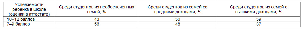 Успешность обучения в школе зависит и от того, насколько зажиточна семья ученика. Так, опрос подтвердил, что дети из зажиточных семей, вероятнее всего, лучше учатся в школе.