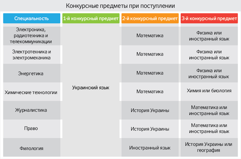 - Таким образом, в этом году схема такова: для каждой специальности определены два обязательных вступительных предмета (из них один - украинский язык) и третий - на выбор абитуриента из нескольких предложенных вариантов. Судя по всему, усилится роль естественно-математических предметов. Сертификаты по ним будут требовать на многих специальностях.
