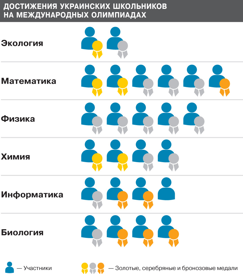 Этот год, как и все предыдущие, принес украинским школьникам много медалей на международных интеллектуальных соревнованиях. Да, украинское образование находится в кризисе. Это верно. Но верно также и то, что таланты у нас есть. И классные учителя есть, которые видят и поддерживают эти таланты. И неравнодушные родители. И отзывчивые спонсоры. Их общими усилиями в этом году команды наших старшеклассников смогли достойно представлять страну на международных олимпиадах.