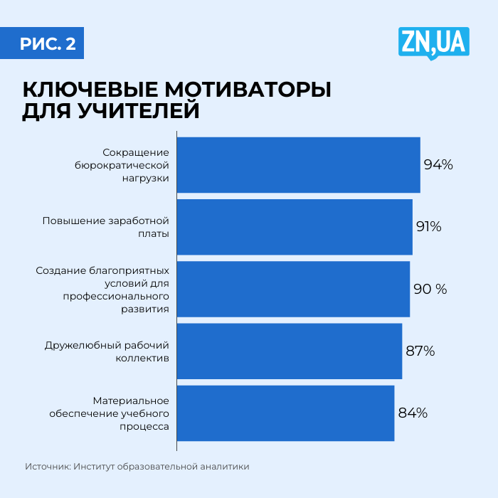 Перегруженные и демотивированные учителя быстро уходят из профессии. За 10 лет работы в общественном союзе «Освіторія» мы неоднократно фиксировали жалобы учителей на перегруженность. По результатам исследования, 60% учителей недовольны объемом реальной рабочей нагрузки, а 53% не устраивает перечень рабочих задач и количество бюрократии в работе.