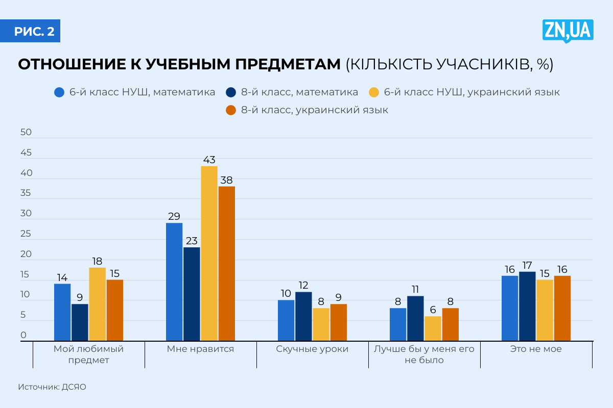 Радует, что тех, кому нравятся уроки математики и языка, значительно больше, чем тех, кто от них не в восторге. Но есть и те, кто не просто их не любит, а хочет, чтобы таких уроков вообще не было. И особенно больно видеть, что это касается уроков украинского языка.