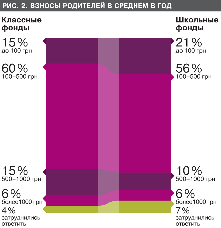 В какую же сумму обходится родительскому карману помощь школе? По подсчетам ERA, в среднем родители вносят в оба фонда (классный и школьный) около 800–900 грн в год.
