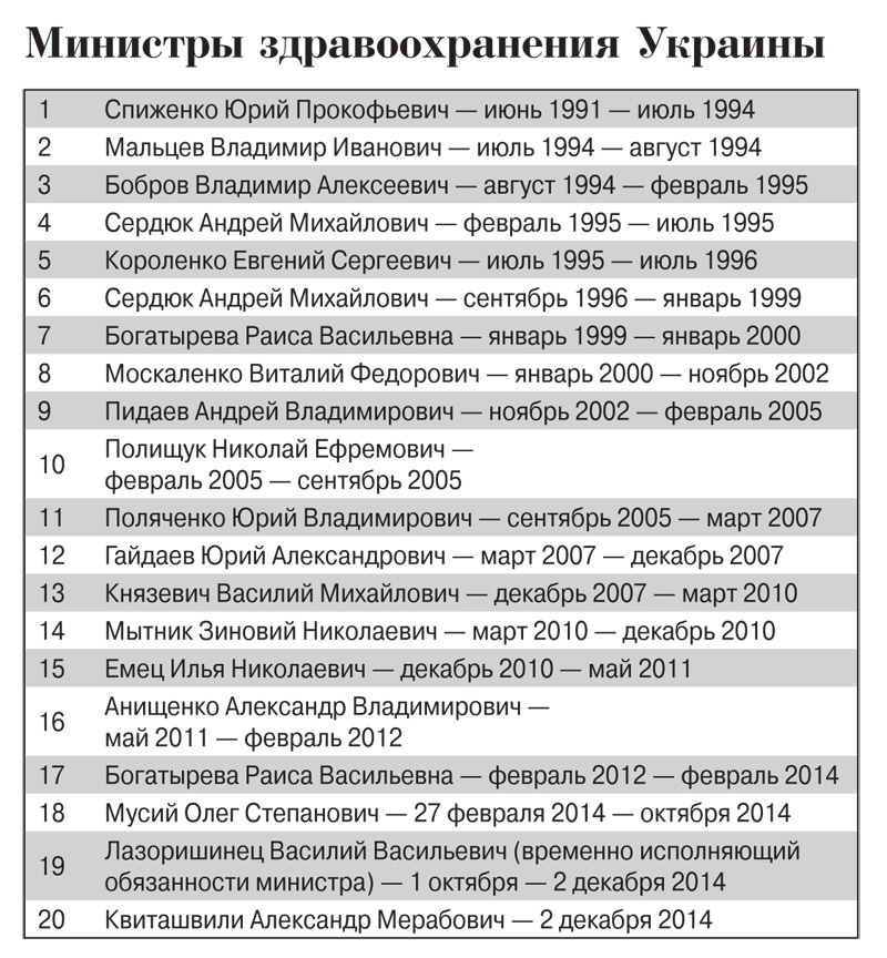 Есть у нас достижение, достойное книги рекордов: за 24 года в независимой Украине поменяли 18 министров здравоохранения. Девятнадцатый - Александр Квиташвили - не дожидаясь, пока его снимут, сам написал заявление об отставке. Что вызвало значительное оживление не только в медицинских и фармацевтических, но и в политических кругах.