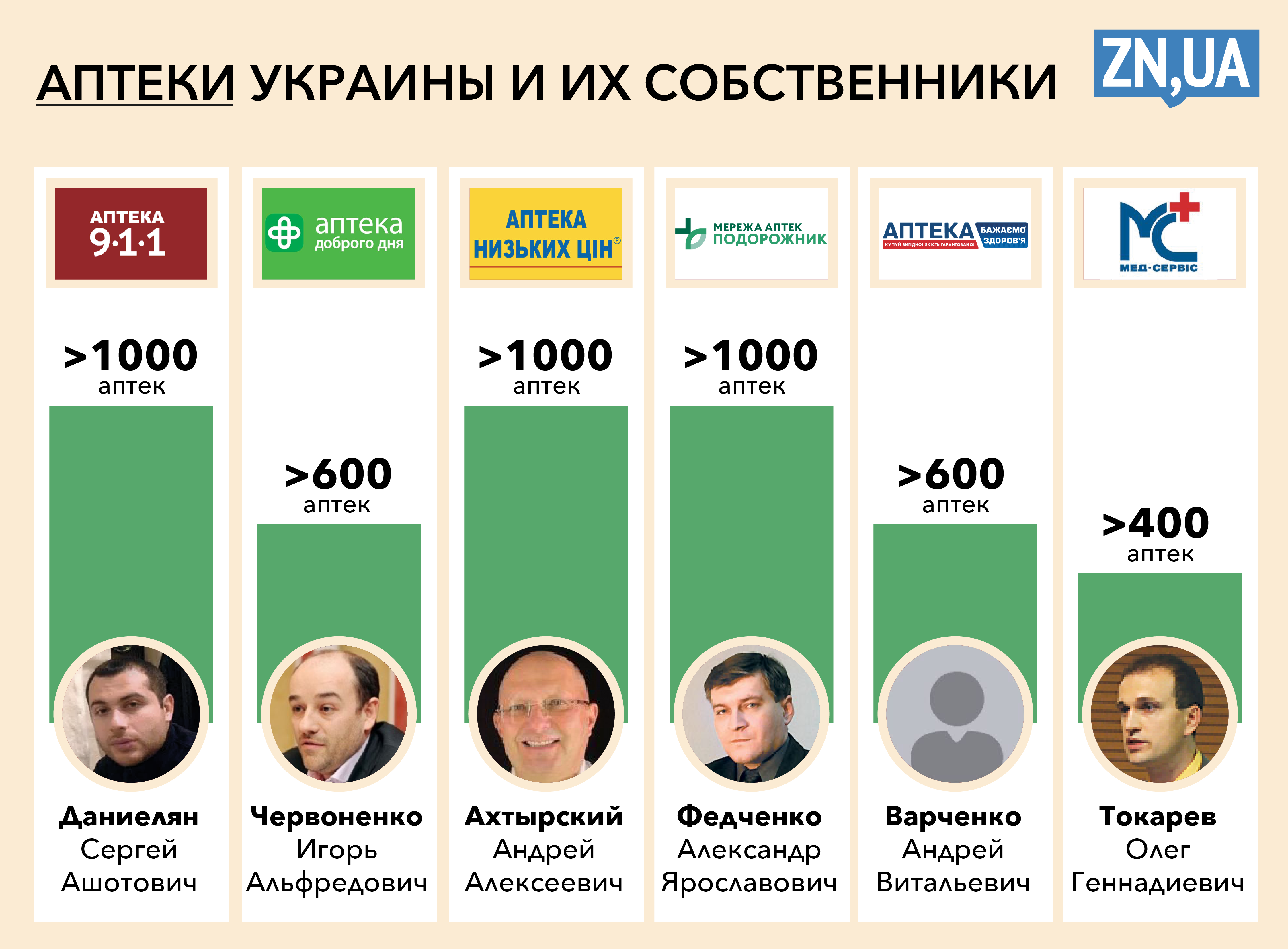 Чтобы все понимали, кому именно из владельцев аптечных сетей следует сказать спасибо, а кому — пожелать всю жизнь покупать анальгин в ампулах по 300 гривен, мы и публикуем нашу инфографику.
