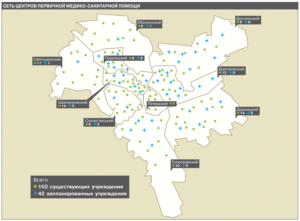 Чиновники заявляют, что в столице в ходе реформирования не будут закрывать больницы и сокращать врачей. Но на официальном сайте КГГА легко найти материалы, в которых медицинская реформа расписана по шагам. Это не только рабочие планы и таблицы, но и доклады, с которыми начальство выступало на коллегиях и совещаниях. По статистике действующая сеть первичной медпомощи столицы включает 102 учреждения, а останется - 42. Например, в Голосеевском районе из 10 оставят 5, в Шевченковском из 14 - 5, а в Святошинском из 11 - всего 1.