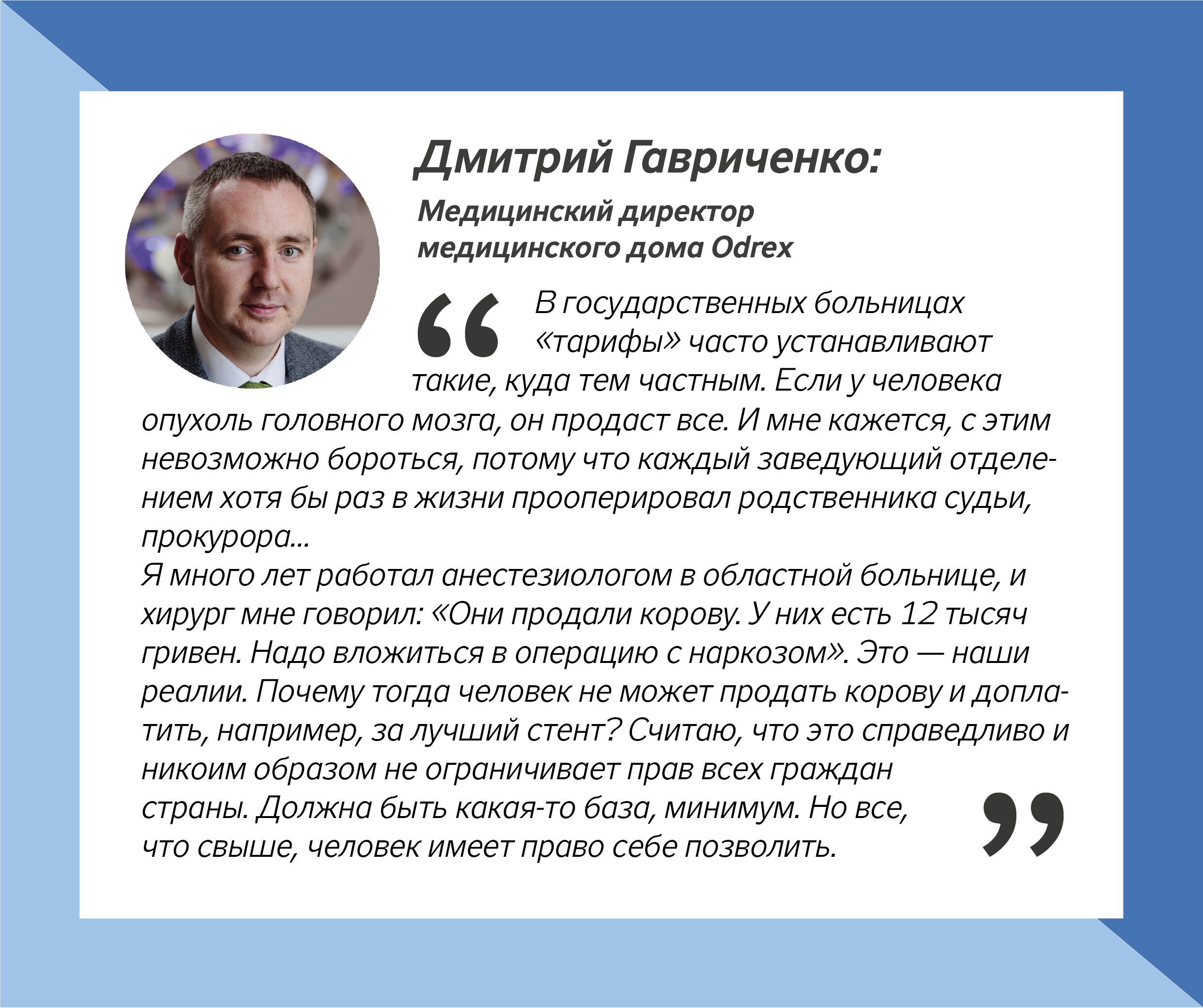 В то же время, приняв Закон «О государственных финансовых гарантиях медицинского обслуживания населения», известный как закон о медицинской реформе, его часть о внедрении сооплат в 2017 году Верховная Рада отклонила. Автором проваленной тогда инициативы был Павел Ковтонюк, в то время — первый заместитель министра здравоохранения, а ныне — соучредитель Украинского центра здравоохранения (UHC). Сегодня, по его словам, он рад, что так произошло. Механизм был недоработан, а страна к такому шагу — не готова. Готова ли сейчас?